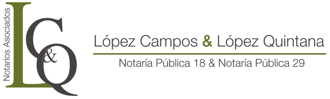 Quiénes somos Somos una firma de profesionales del derecho dirigida por los Licenciados Ricardo López Campos y Cecilia Isabel López Quintana (titulares de las notarías públicas 18 y 29 respectivamente) quienes nos hemos asociado con el propósito de ofrecer seguridad jurídica y diligencia; con la experiencia y actualización constante que nos respaldan. |